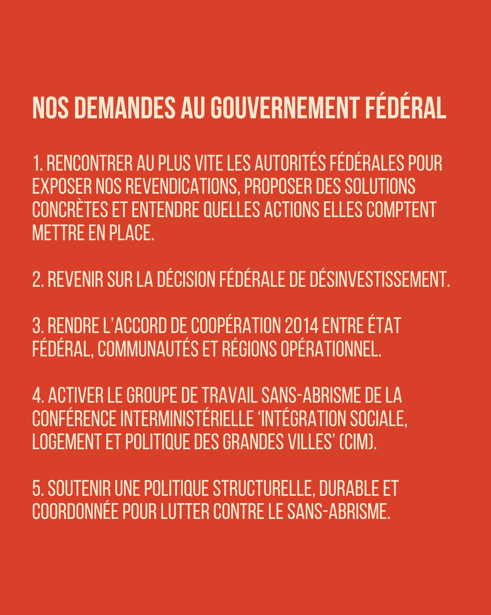Nos demandes au gouvernement fédéral :