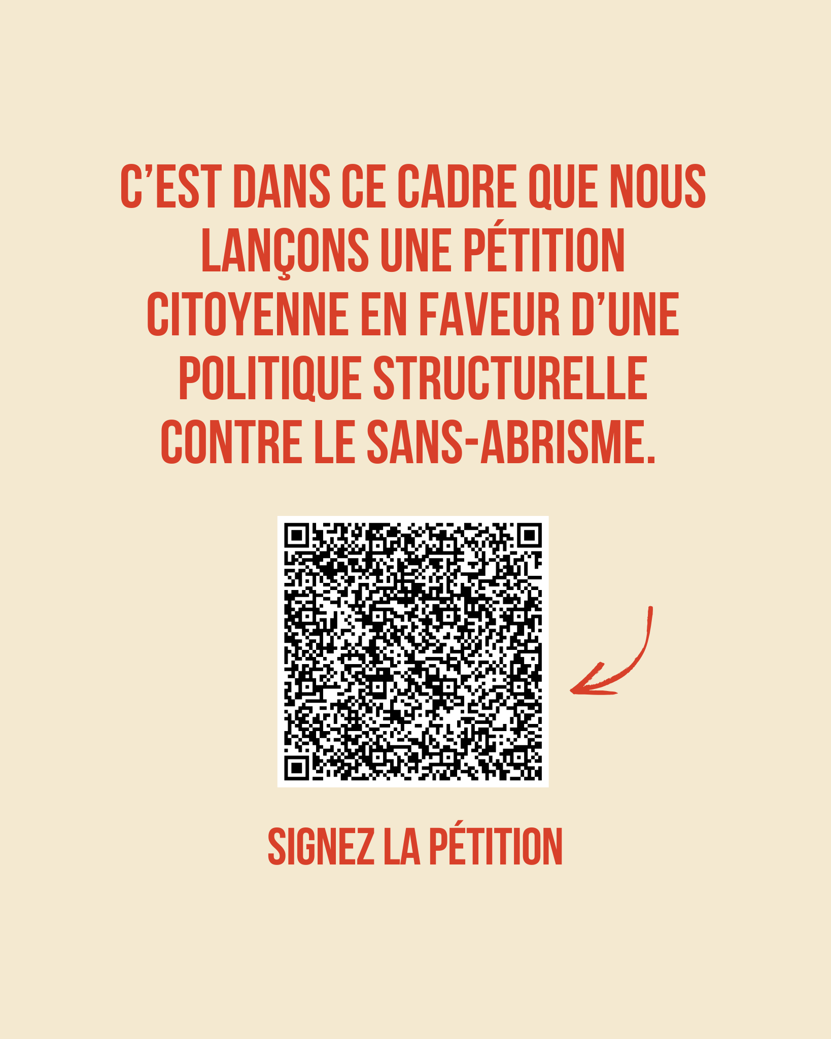 C’est dans ce cadre que nous lançons une pétition citoyenne en faveur d’une politique structurelle contre le sans-abrisme.