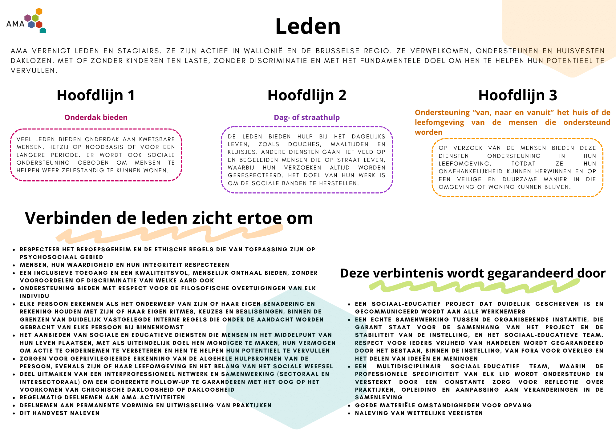 De werkmethodologie van de AMA-lidinstellingen wordt gekenmerkt door: